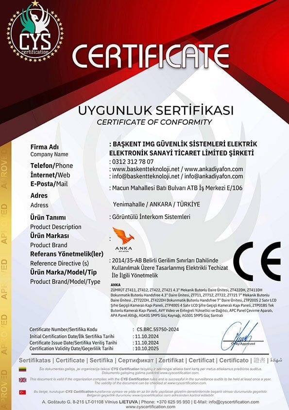 ANKA Diafon Türkiye'de üretilmektedir.
