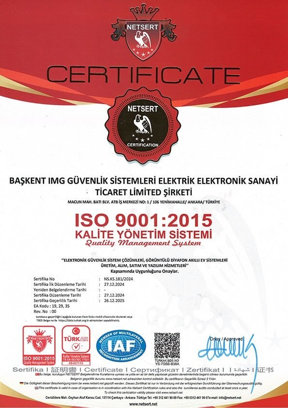 Anka Görüntülü Diyafon Sistemleri, Türk mühendisler tarafından geliştirilmiş olup; ISO 9001:2008 kalite sistemine sahip yerli üretim ve yerli yazılımdır. CE Sertifikası bulunan ürünlerimizin yurtiçi ve yurtdışında müşterilerimiz kullanmaktadır. Ürünlerin kolay kurulum ve kolay montaj özelliği bulunmaktadır.